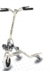 Swing scooter New folding and steering system Big PU wheel Specification Capacity weight : 110kg Weight : 12.5kg Material : Steel and alu.alloy Finish : Powder epoxi painted Wheel/size : FrontΦ200mm, RearΦ: 100/120mm Wheel bearing : 608zz Dimension Folded : (1209Χ587Χ175mm) Armed : (1070Χ585Χ909mm) Pedal :340mmx120mm
